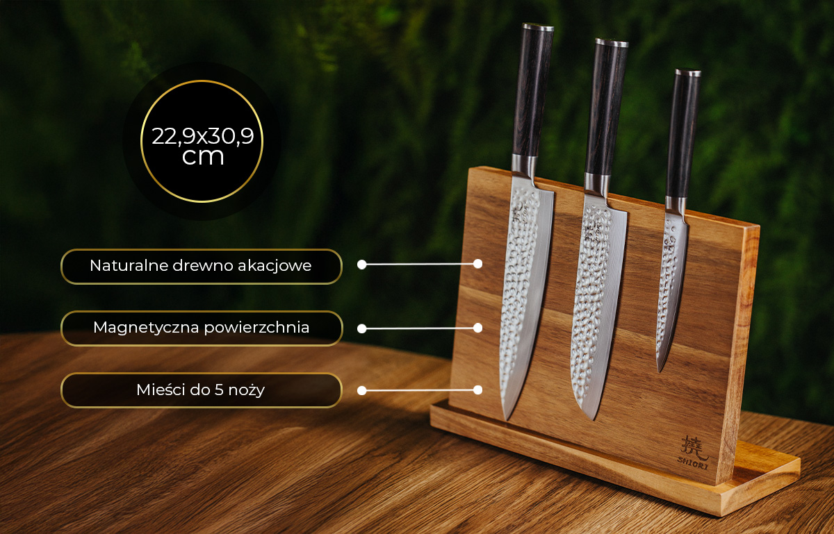 - Deska magnetyczna na noże Shiori z drzewa akacjowego.