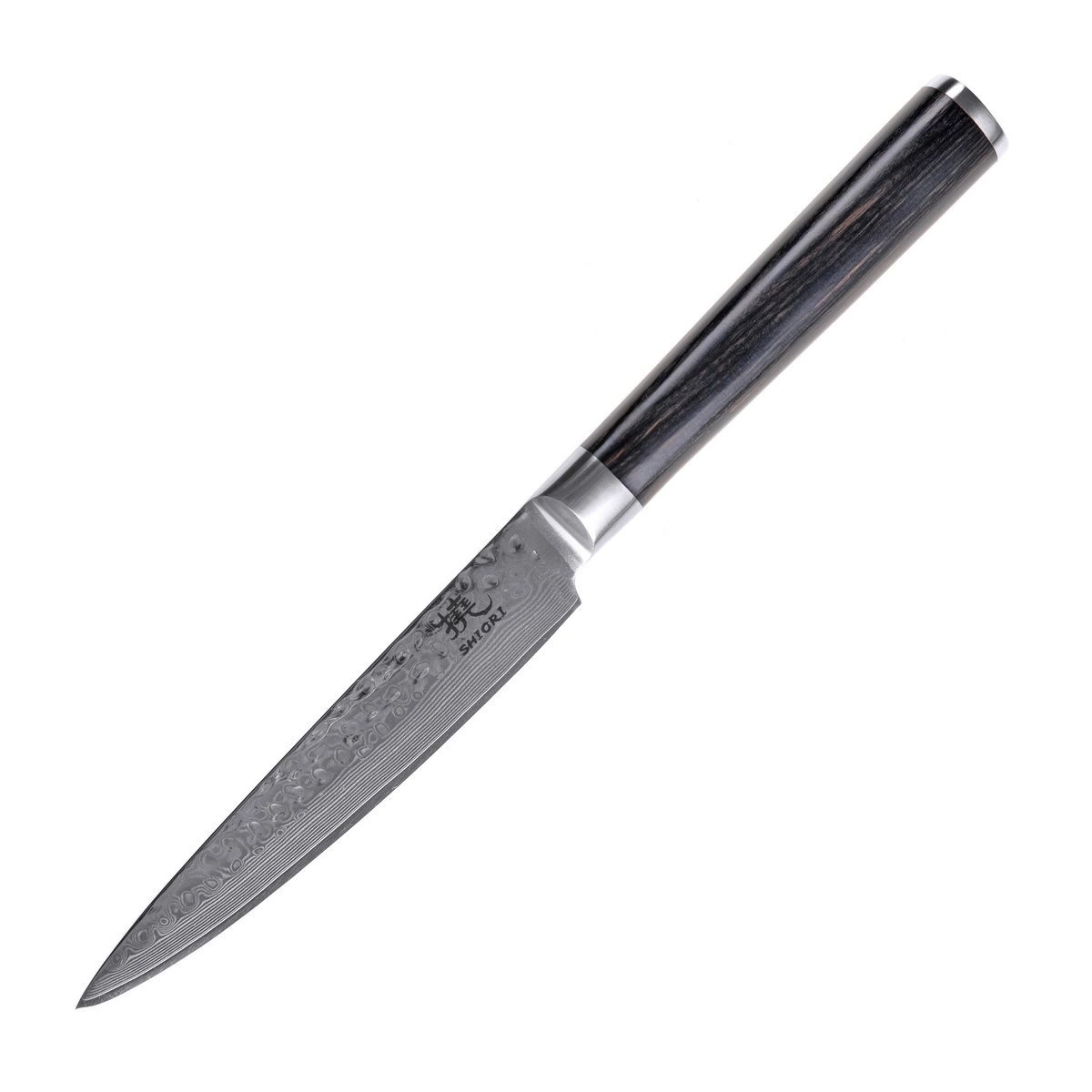 Uniwersalny nóż Shiori z serii 撓 Chairo Murō. Praktyczny nóż ceniony przez profesjonalistów i szefów kuchni, zarówno do krojenia małych i średnich produktów. Doskonały również do czyszczenia warzyw. Wyjątkowo szlachetne wzornictwo - upiększy każde gospodarstwo domowe.