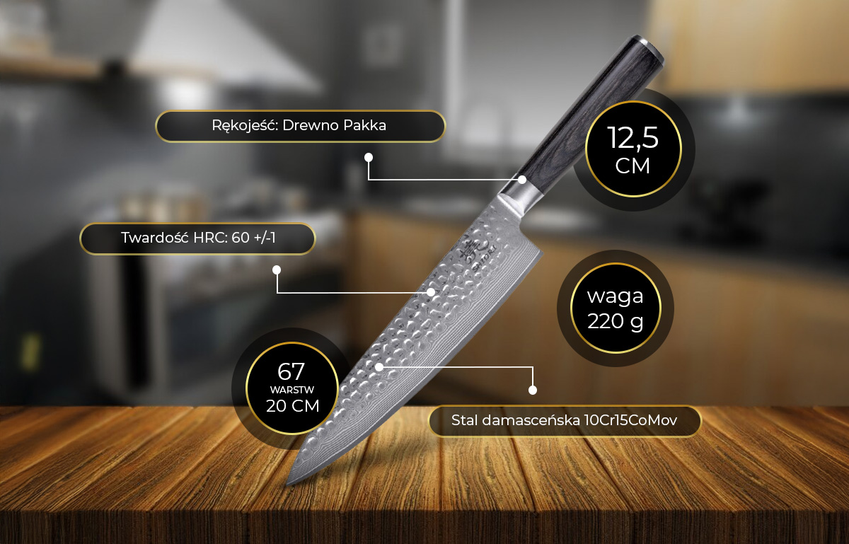 Szukasz profesjonalnego, wielofunkcyjnego noża do swojej kuchni? Nóż szefa kuchni Chairo Sifu ze stali damasceńskiej będzie idealnym rozwiązaniem! Nóż szefa kuchni charakteryzuje się szerokim, twardym i mocnym ostrzem, z wyjątkowo twardym rdzeniem i unikalną strukturą powierzchni. Nóż szefa kuchni Chairo Sifu jest bardzo praktyczny i idealnie nadaje się do przygotowywania różnego rodzaju potraw. Sklep z nożami oferuje noże Sifu najwyższej jakości. Sprawdź naszą ofertę i złóż zamówienie w Shiori!