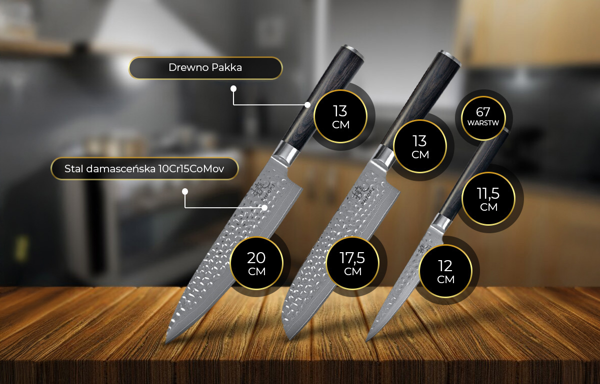 Noże ze stali damasceńskiej - zestaw najwyższej jakości