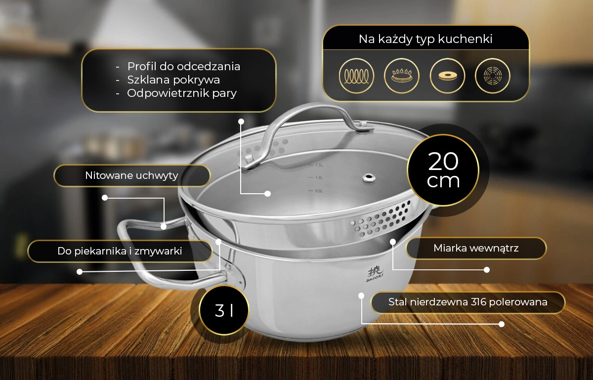 Shiori 撓 Steel Series Pro 316 garnek indukcja 20 cm (3 l)
