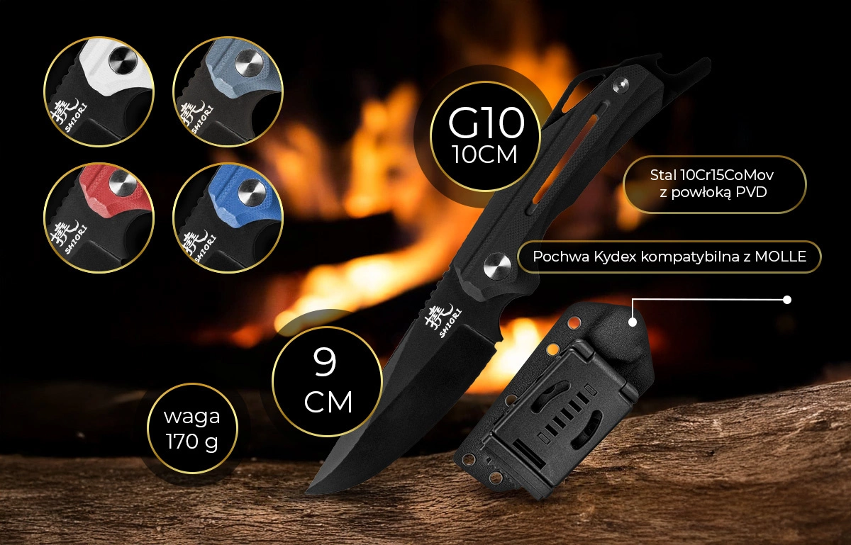 Wykuwany z wysokowęglowej stali 10Cr15CoMoV, wzbogaconej kobaltem i wanadem. W świecie, gdzie liczy się każda decyzja i każdy ruch, potrzebujesz narzędzia, które nie zawiedzie. Shiori Daichi Kuro to myśliwski nóż stworzony do zadań specjalnych – niezawodny w terenie, gotowy na wszystko.