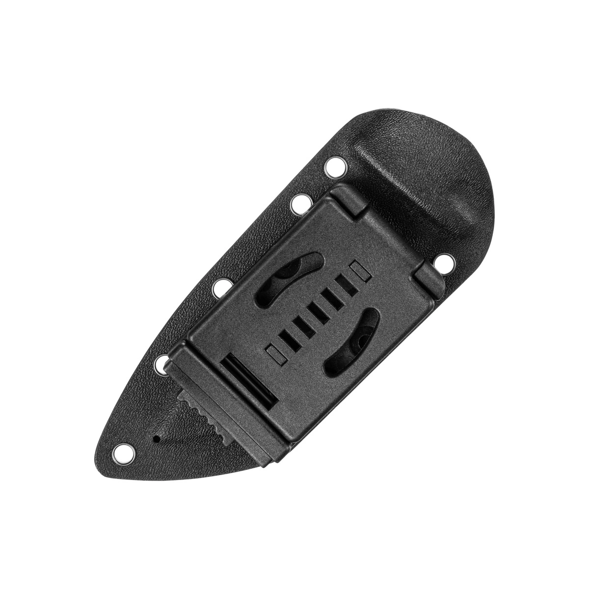 Pochwa wykonana z Kydexu jest idealnie dopasowana do geometrii noża, nie obciera ostrza, a precyzyjny zatrzask chroni przed jego przypadkowym wysunięciem. Możliwość zamocowania zgodnie ze standardem MOLLE ułatwia przenoszenie.