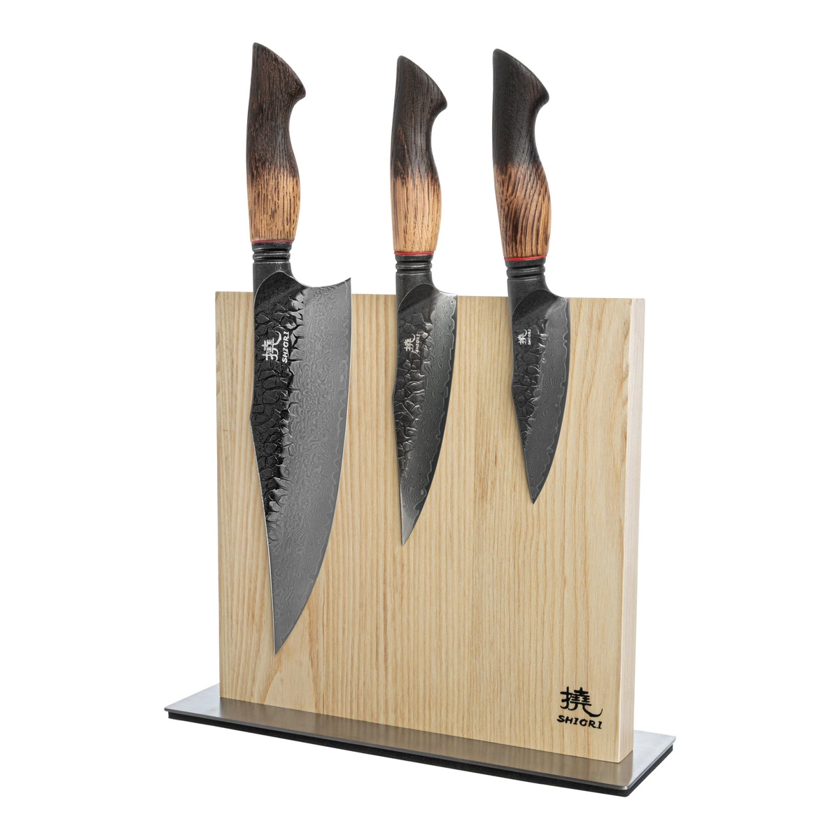 W desce umieszczono silny magnes, który pozwala bezpiecznie zawiesić do 4 noży. Dzięki temu ostrza nie przesuwają się, nie uderzają o siebie i łatwo je sięgać, kiedy gotujesz, gdyż wszystkie są pod ręką.